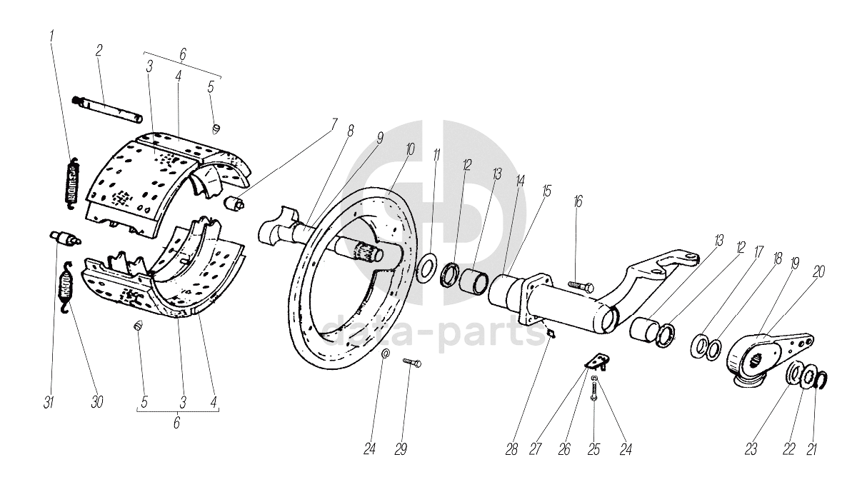 Тормоз среднего и заднего мостов