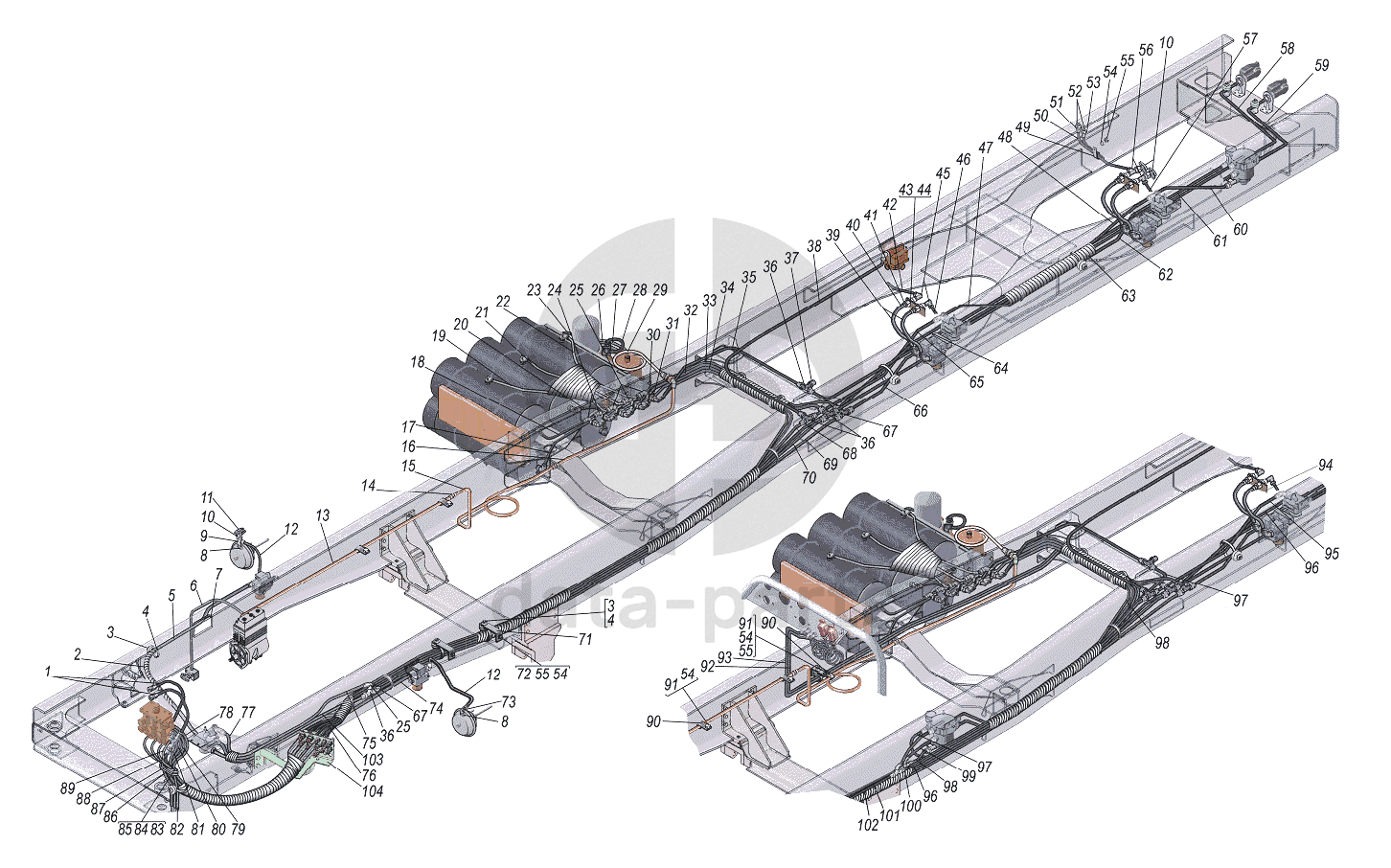 Трубка от 3-ей секции тормозного крана к заднему КУРТ первая