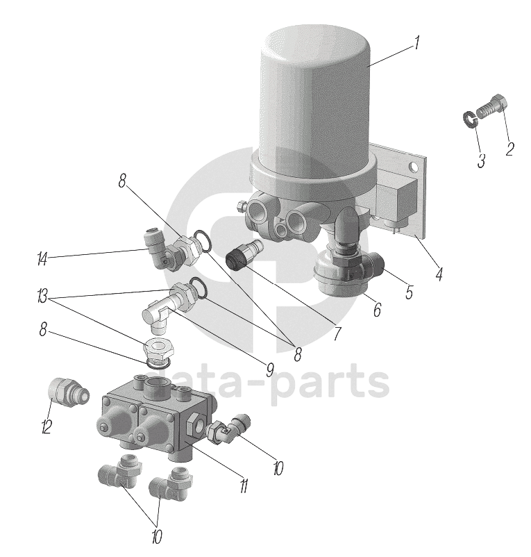 Установка влагомаслоотделителя и 4-х контурного защитного клапана УРАЛ-6370-1121