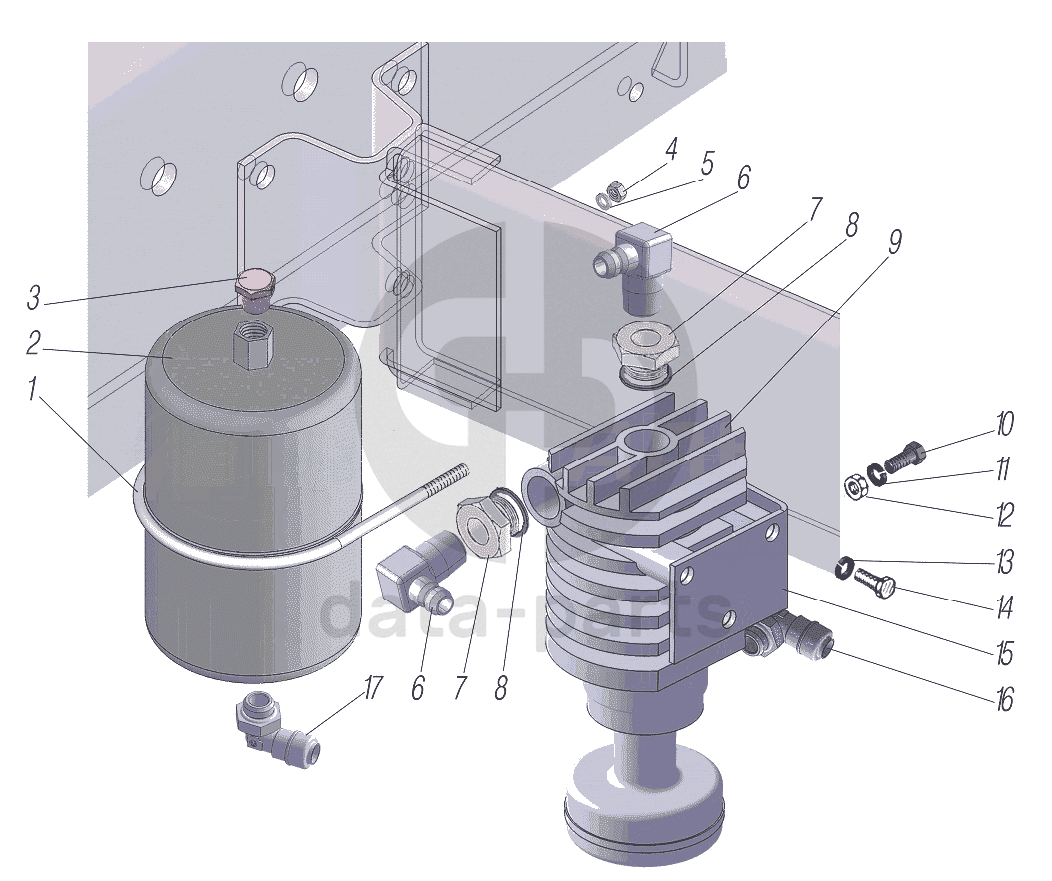 Установка баллона адсорбера и маслоотделителя УРАЛ-6370-1121