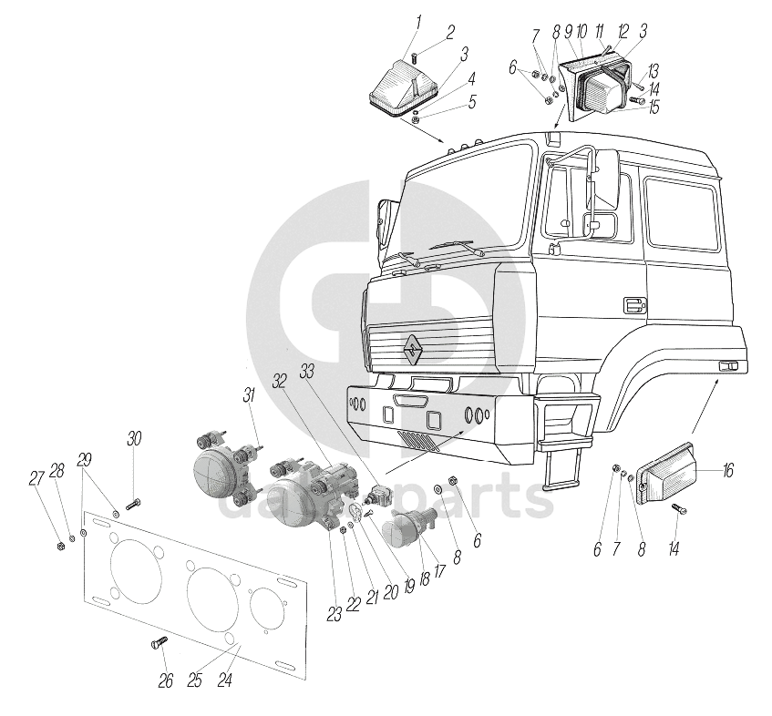 Установка фар, фонарей знака автопоезда, габаритных и указателей поворота