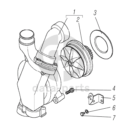 Корпус подшипника с осью, крыльчаткой и шестерней водяного насоса в сборе