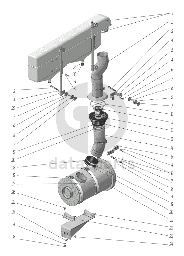 Установка воздушного фильтра и воздухозаборной трубы УРАЛ-63704