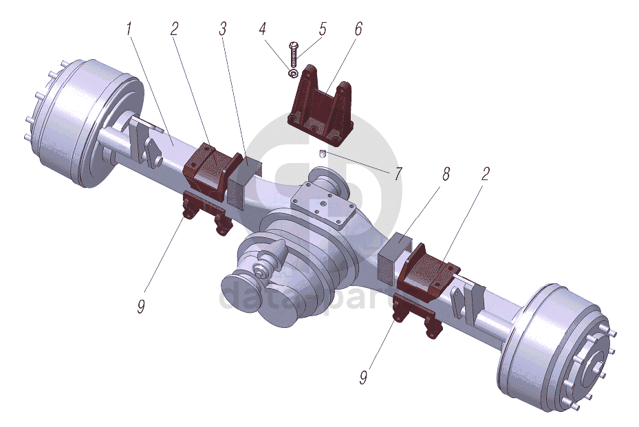 Мост средний в сборе с кронштейнами подвески УРАЛ-63704