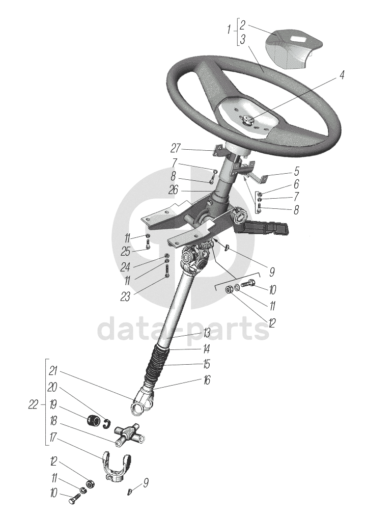 Шарнир вала рулевого управления УРАЛ-Безкапотник (480 мм, мелкий шлиц на вилке)