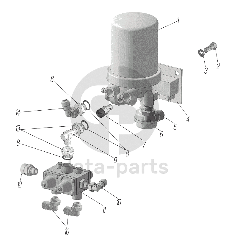 Установка влагомаслоотделителя и 4-х контурного защитного клапана УРАЛ-63704